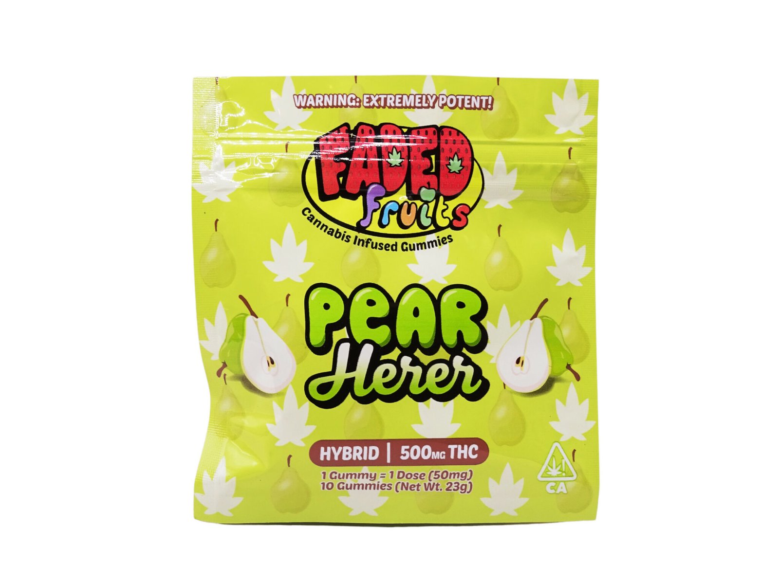 Faded Fruits Pear Herer 500mg is a THC-infused gummy pack containing 500mg total THC per package. Each gummy is carefully formulated to support even THC distribution, helping ensure that consumers can portion their servings responsibly.